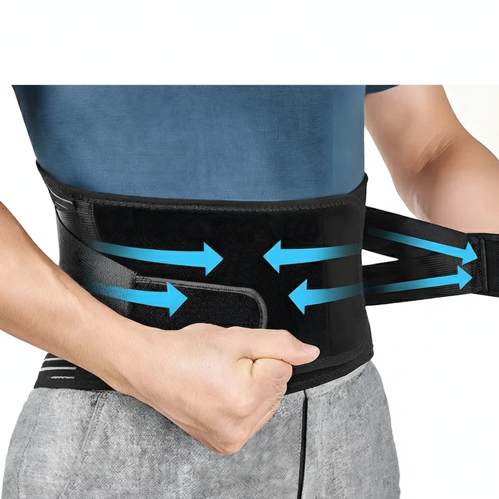 Relieve your back pain and regain freedom of movement with this advanced lumbar support belt. The removable inflatable pad provides support to your spine. It provides dynamic traction, correcting spinal alignment while reducing discomfort caused by hernia, sciatica, and scoliosis. Its double adjustable straps ensure comfortable, safe, and breathable use throughout the day.